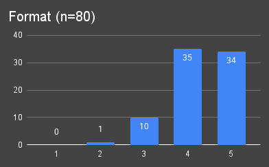 The community view of the format is great as usual. The overall rating landed at a 4,28 mean with a median of 4, and 86,25 % of respondents rated the format 4–5 (including 42,50 % perfect 5s). Written feedback largely matches this: most comments describe the format as healthy and fun, with suggestions framed as fine-tuning (personal preferences, local meta texture) rather than any sense that the format is in trouble.